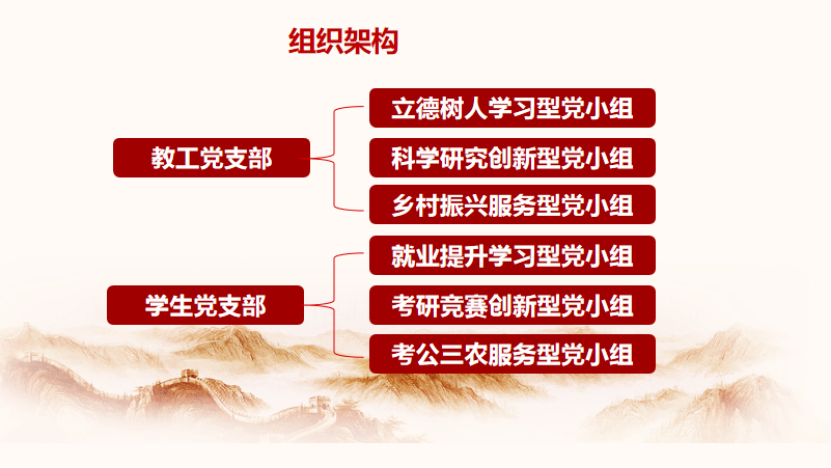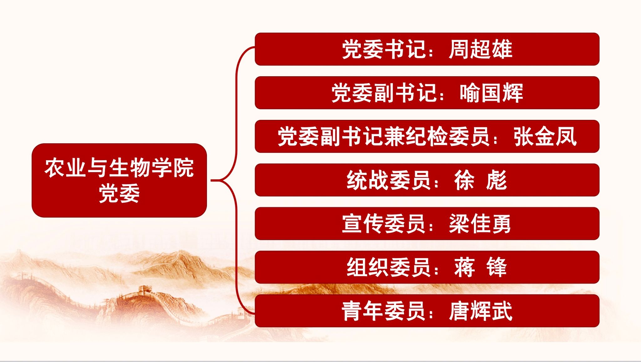 yl6776永利集团党委在学校党委的领导下,坚持以马克思列宁主义、毛泽东思想、邓小平理论、“三个代表”重要思想、科学发展观、习近平新时代中国特色社会主义思想为指导,全面贯彻落实党的二十大和二十届二中、三中全会精神,紧紧围绕省委“1310”具体部署及学校更名大学、申报博士点、本科教育教学审核评估、“双百行动”、迎接百年校庆等重点工作,坚持以党的政治建设为统领、以服务大局为导向,凝心聚力促发展,以高质量党建引领学院事业高质量发展。学院党委作为基层党组织,认真按照“新时代党的建设总要求”,坚持和加强党的全面领导,坚持党要管党、全面从严治党,以加强党的长期执政能力建设、先进性和纯洁性建设为主线,以党的政治建设为统领,以坚定理想信念宗旨为根基,以调动全体党员的积极性、主动性、创造性为着力点,以党组织全面过硬为重点,以坚持和强化党的领导、促进发展稳定为工作标准,以加强政治、思想、制度、作风廉政、组织、基本保障建设和基本活动等为主要内容,克难而上,砥砺前行,全面推进学院党委的政治建设、思想建设、组织建设、作风建设、纪律建设,把制度建设贯穿其中,深入推进反腐败斗争,不断提高党建质量,把学院党委建设成为始终走在时代前列、师生衷心拥护、勇于自我革命、经得起各种风浪考验、朝气蓬勃的先进基层党组织。 学院党委坚持以立德树人为根本、以强农兴农为己任,认真落实立德树人根本任务,以提高党员素质,增强党组织凝聚力战斗力,提高教师职业道德水平,践行社会主义核心价值观,把党建工作融入教学、科研、立德树人、文化传承、社会服务工作中,着力抓好党组织和党员队伍建设,明确工作职责、改进工作方法、增强服务功能,提升党建工作水平,为学院各项工作的顺利开展和目标任务的圆满完成提供可靠的思想保证和组织保证。 学院党委由7名同志组成:其中,周超雄同志任党委书记、喻国辉同志任党委副书记、张金凤同志任党委副书记兼纪检委员、徐彪同志任统战委员、梁佳勇同志任宣传委员、蒋锋同志任组织委员、唐辉武同志任青年委员,下设8个党支部。 学院党委在学校党委的统一领导下,在校党委组织部、宣传部、统战部等有关部门指导下,充分发挥学院党委和党支部两级党组织的积极性,积极推进学院基层党组织工作的科学化、民主化和制度化,扎扎实实地做好“党建+”等党建品牌和党建各项工作。