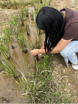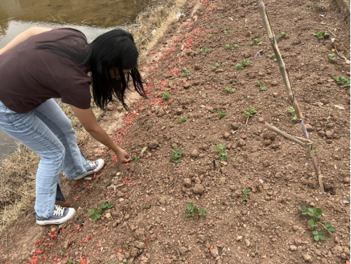 在罗平镇,刘凯老师团队对当前作物病虫害发生情况进行仔细排查。通过观察植株叶片与茎干以及采集样本配合室内镜检,科学评估病虫害潜在风险。同时,针对近年来局部地区存在的红火蚁防控问题,团队也在田间地头进行了认真勘查,为制定科学的防控方案收集了一手信息。