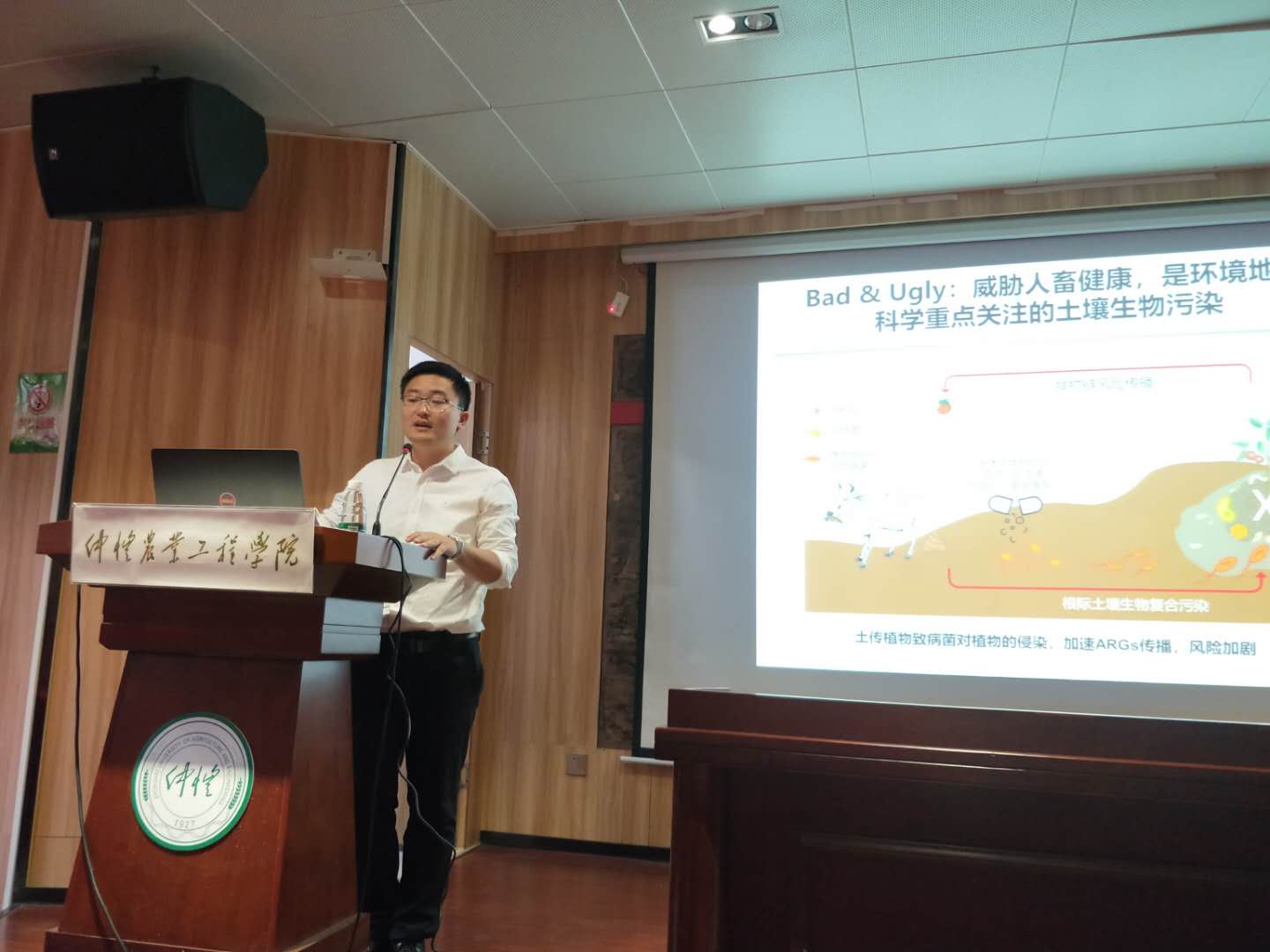 10月28日下午三点半,植物健康创新研究院细菌与微生物农药创新团队在6776永利集团海珠校区英东楼111会议室开展“根际免疫定向调控原理与技术”主题学术讲座。讲座特邀南京农业大学韦中教授为主讲,喻国辉教授主持了本次学术讲座。