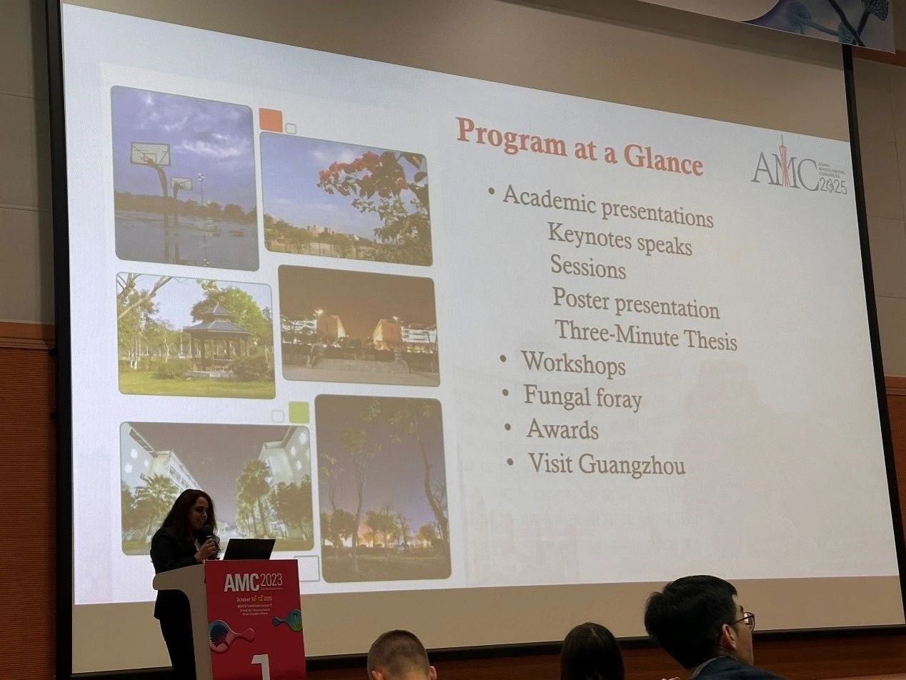 在闭幕式上,Ishara S. Manawasinghe代表我校做了2025年亚洲菌物学大会主办呈述和邀请演讲,并播放了“Mycology Creating Prosperity in Asia ” (菌演万物·物荣亚洲)宣传视频。会议后,与会代表对2025年在广州举行的亚洲菌物学大会充满期待并接受参会邀请。本次会议的胜利闭幕,也开启了亚洲菌物学进入仲恺时间。