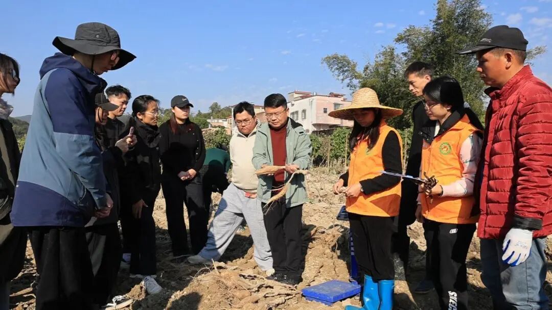 为深入推进广东省“百千万工程”取得实效,强化基层党组织在乡村产业发展中的引领作用,2025年1月12日,我校喻国辉教授以“党建引领、科技示范”的模式,与结对的党员种植户开展结对帮扶工作。在竹山村粉葛绿色防控核心示范区,开展光合高脂膜绿色增产相关工作,以党员种植户为示范核心进行技术测试与推广。
