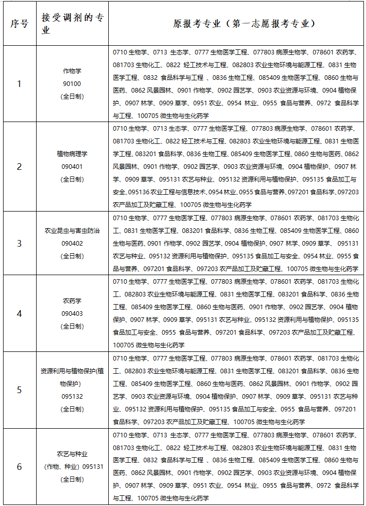 2.接受调剂的专业及原报考专业(第一志愿报考专业)要求如下: