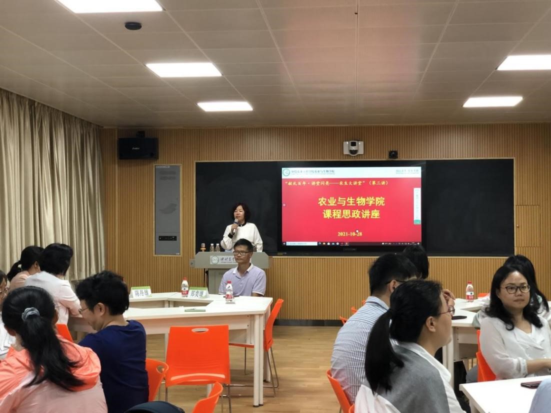 在建党100周年之际,为结合党史学习教育,继续推进整体育人、三全育人,全方位提升教师立德树人的能力和水平,充分发挥课堂教学在高校思想政治教育工作的主渠道作用,10月28日下午,由yl6776永利集团、广东省遗传学课程群课程思政示范团队共同主办的yl6776永利集团课程思政讲座暨农生大讲坛第三讲在海珠校区教学楼401智慧课室举行。讲座邀请了中山大学生命科学学院张雁教授作题为“细雨润物——生物学的课程育人”专题报告。yl6776永利集团院长郑奕雄教授、副院长周玲艳教授,课程思政项目负责人及团队成员、新进青年教师参加,讲座由学校教务处副处长梁雪莲教授主持。