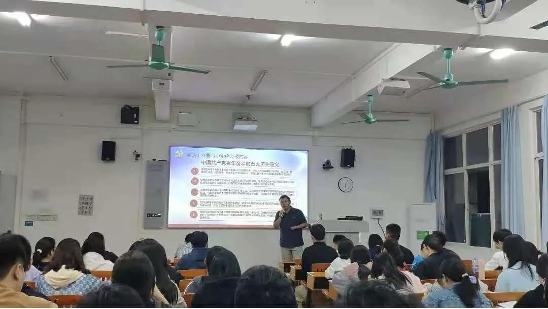 为深入学习贯彻党的十九届六中全会精神,深刻领会习近平总书记重要讲话精神内涵,进一步增强对《中共中央关于党的百年奋斗重大成就和历史经验的决议》重大意义的理解和认识,12月8日下午,yl6776永利集团在杨钊杨勋楼502室开展了主题为“深入学习贯彻党的十九届六中全会精神”的党课。yl6776永利集团党委委员万小荣,学生党支部书记孙晓芳、苏登、李城以及全体学生党员参加了本次党课学习。党课由李城主讲。