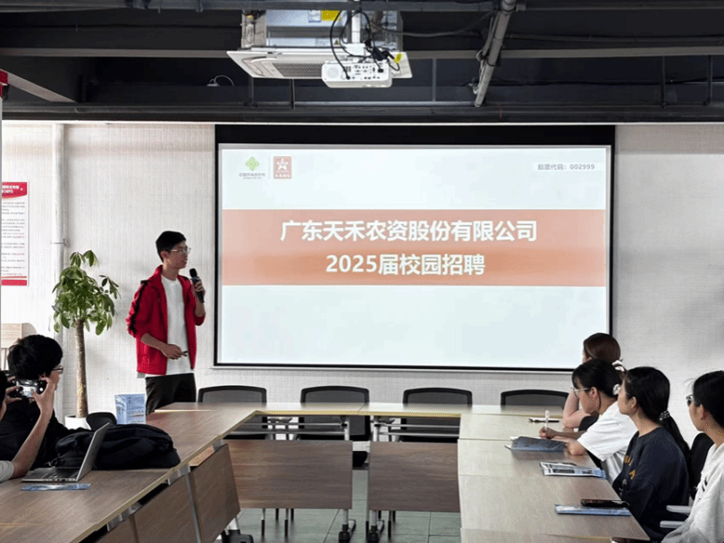宣讲会上,天禾农资培训发展专员陈以恒从企业概况、业务布局、招聘计划等方面展开介绍,重点解读了企业五大优势:行业领先的农资供应链体系、定制化人才培养路径、多元福利保障、清晰的职业晋升通道以及助力乡村振兴的实践平台。他表示:“天禾农资不仅提供岗位,更致力于为青年打造扎根农业、服务乡村的成长舞台。”
