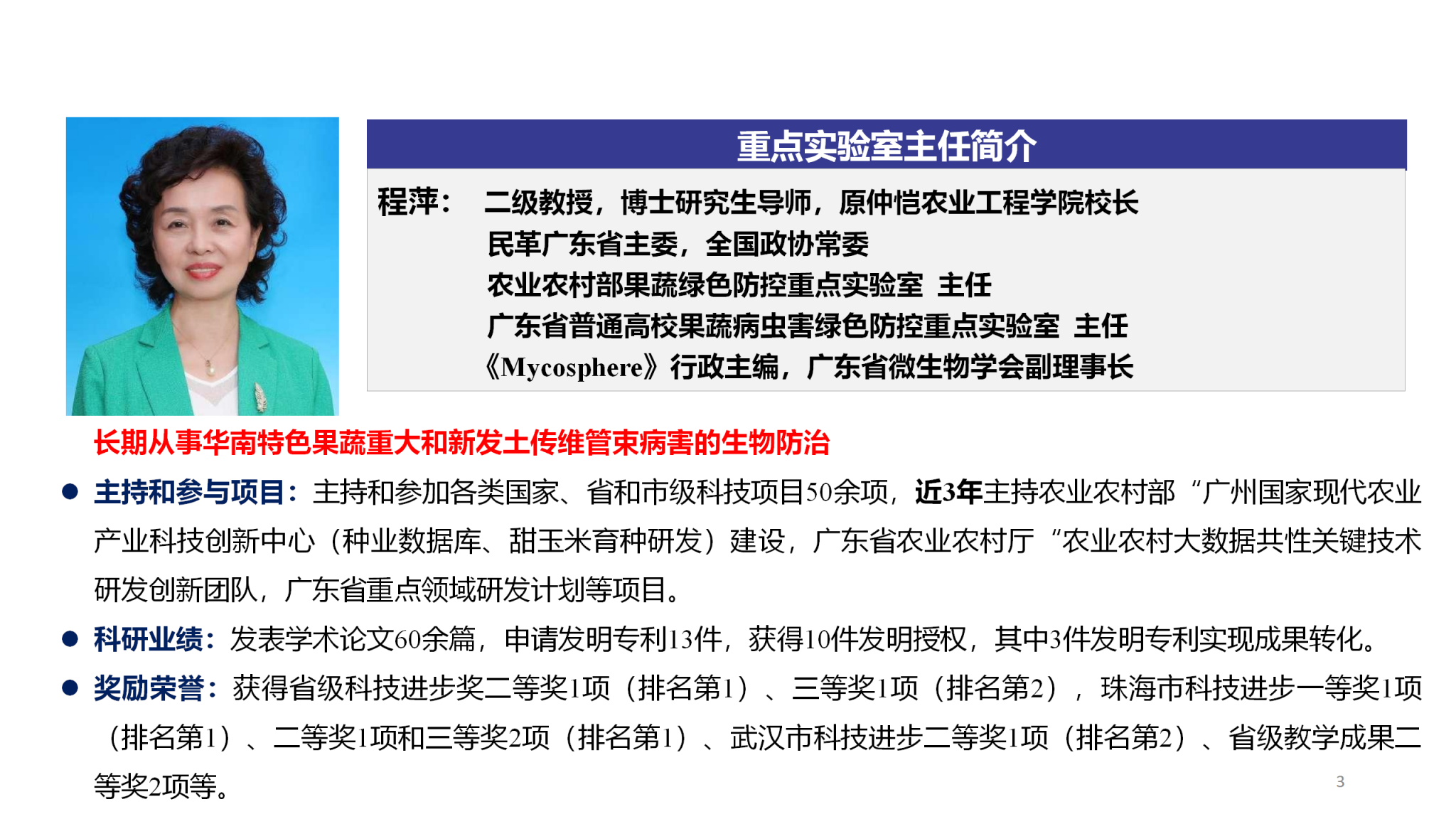 程萍教授(实验室主任)